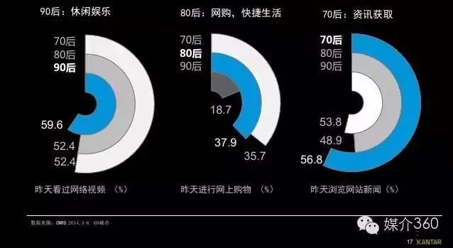 不同代际社交媒体用户的网络行为如下: