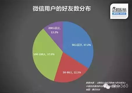 微信作为中国微信用户强大的社交工具,接近一半活跃用户拥有超过100位微信好友。62.7%的微信用户的好友超过50人。