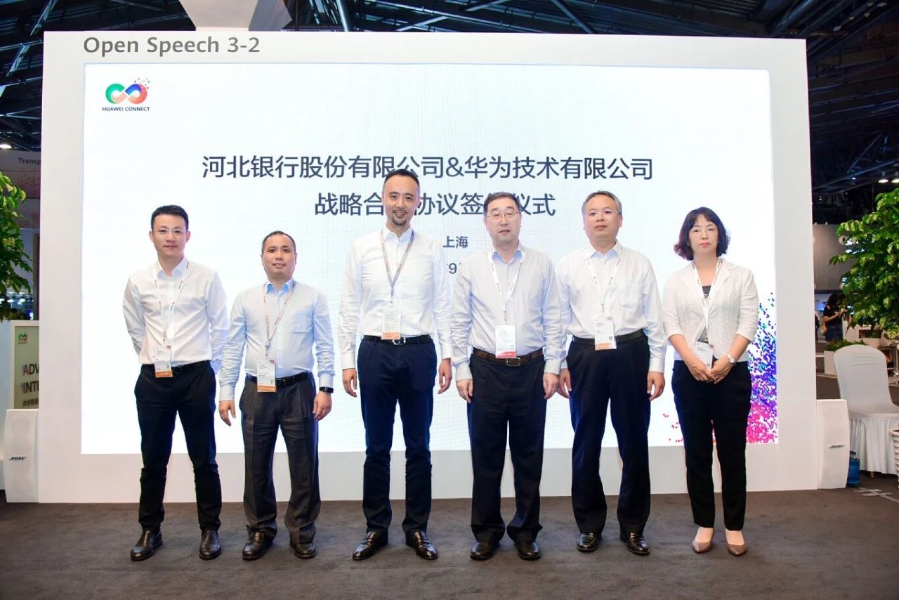 9月19日,河北银行股份有限公司(以下简称“河北银行”)与华为技术有限公司(以下简称“华为”)在2019华为全联接大会上签署战略合作协议。河北银行股份有限公司董事长乔志强、河北银行股份有限公司董事会秘书赵清辉、河北银行信息技术部总经理杜晓洁,华为EBG中国区副总裁史耀宏、华为河北企业业务部总经理邓英尧、华为河北企业业务副总经理王庆等出席签约仪式。
