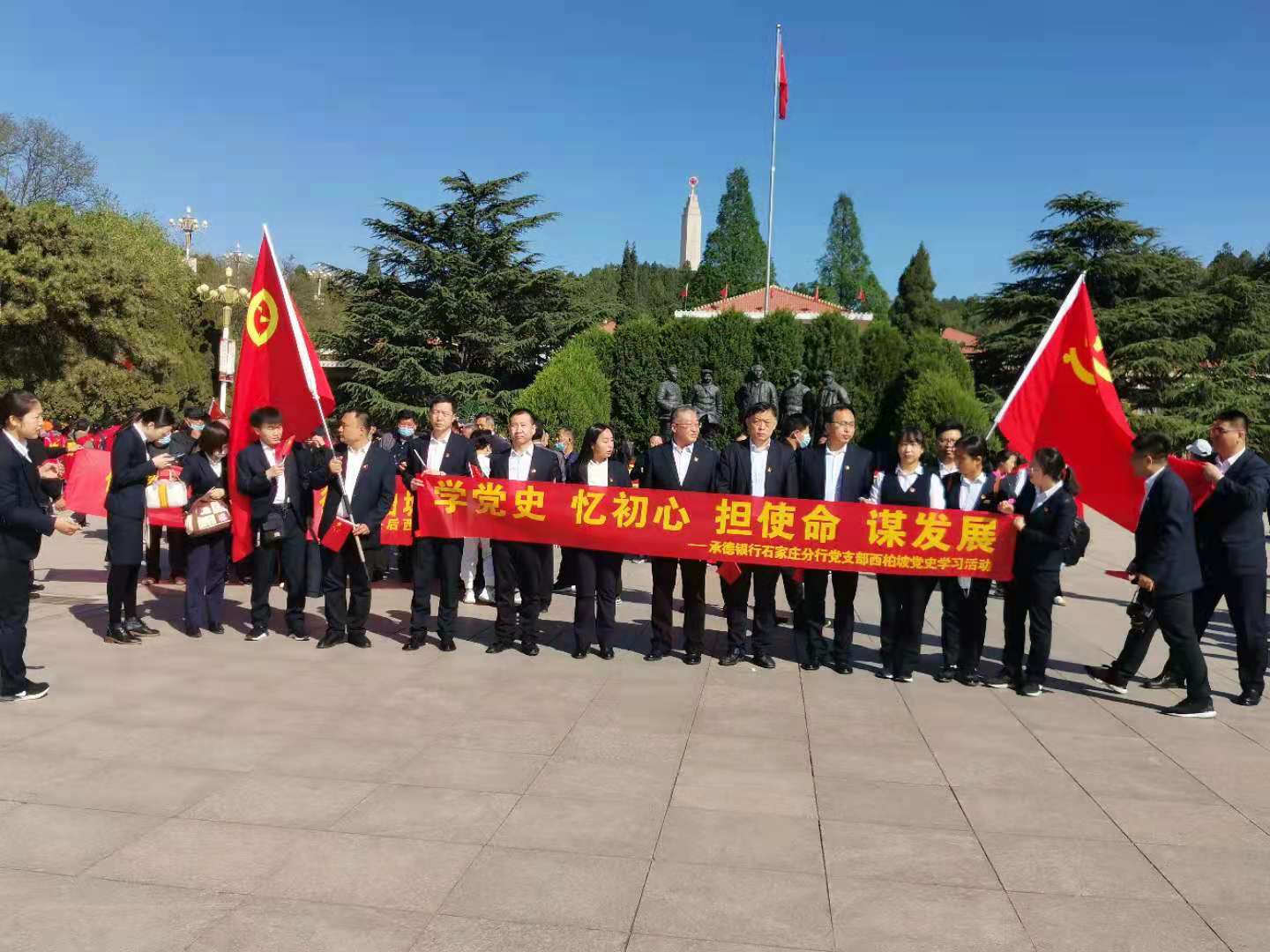为了迎接建党100周年,承德银行组织党员到西柏坡参观学习,录制党史微课。