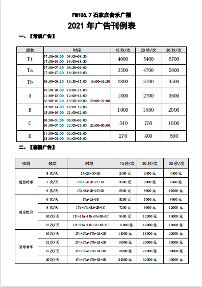 石家庄音乐广播 (FM106.7)2022年广告刊例